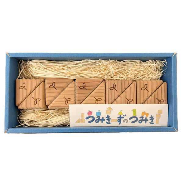 0歳から安心して使える 国産ひのきのつみき|誤飲防止設計・丁寧な面取りで安全|つみきーずのつみき(三角柱10ピース)
